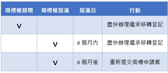 商標是否仍可以辦理商標繼承,請參閱以下表格
